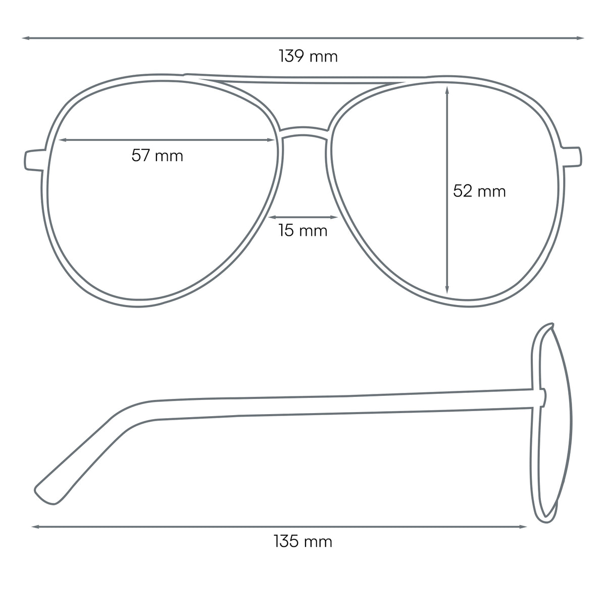 ZEN Oversized Aviator Super Dark Sunglasses Measurements